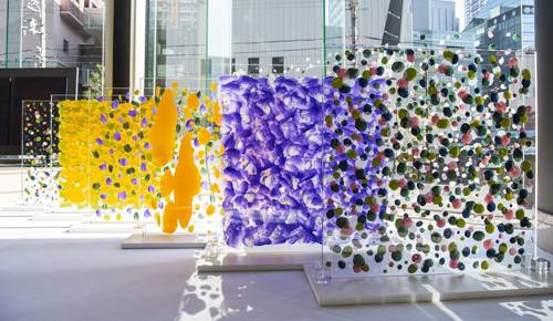 2015年に窓ガラスにしたライブペイントをきっかけに、支持体としてアクリル板を使い始める。 2017年に港都KOBE芸術祭に出展し、彩色樹脂シリーズが展開。泡立てた彩色樹脂を背面に塗布したアクリル板を多数空間に直立させることにより、宙を舞う色彩が何重にも重なり密度と奥行きを増し、周りの環境とも呼応する作品となる。