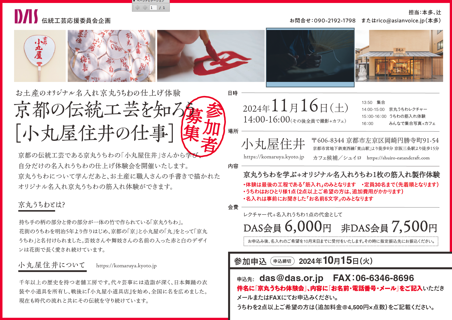 先日ご案内させていただきました「京丸うちわ体験会」に関しまして、