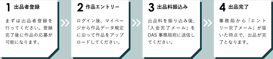 《出品者登録》を行った後、《作品エントリーページ》にて必要事項を入力し、《作品データ登録》より作品画像をアップロードしてください。